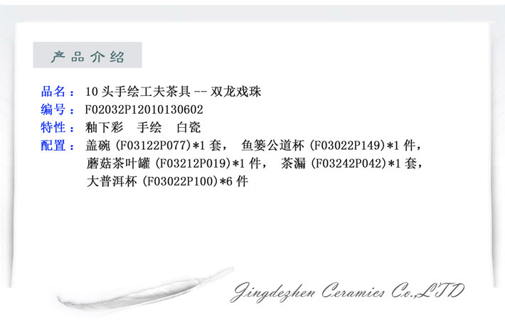 10頭手繪工夫茶具雙龍戲珠