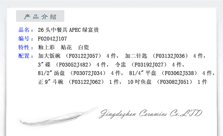 26頭中餐具APEC綠富貴
