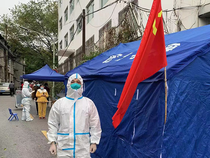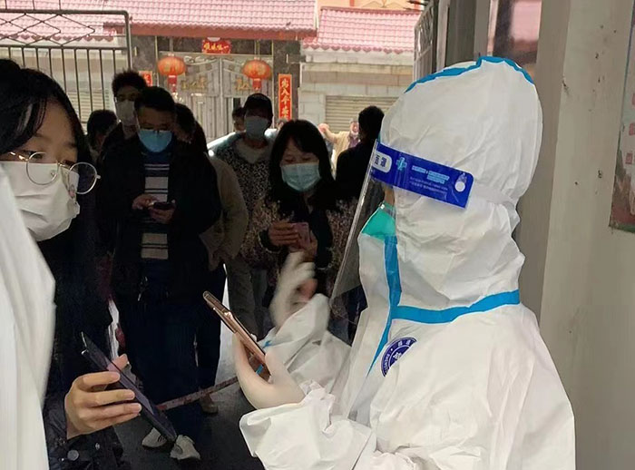 社區(qū)“雙報到”,抗疫顯擔(dān)當(dāng)。疫情來襲,黨員穿上“大白”防護(hù)服、做好秩序維護(hù)、發(fā)放健康檢測表、信息錄入、政策宣傳、掃碼查驗(yàn)、上門進(jìn)行采集核酸……。在各管控小區(qū),黨員志愿者們的身影,一直在為小區(qū)居民們辛苦地付出著?!拔覀兌际切^(qū)業(yè)主,又都黨員志愿者,在這種特殊時刻更要挺身而出,體現(xiàn)作為黨員的本分,在危難時刻顯擔(dān)當(dāng)。根據(jù)防疫工作安排,每天的工作時長都不固定,但我們每天都從半夜工作到凌晨。我們社區(qū)大家的配合度都很高,整個小區(qū)情況比較平穩(wěn),我們覺得能夠在疫情防控工作貢獻(xiàn)一些力量感到很開心?!蔽S狼逭f道。