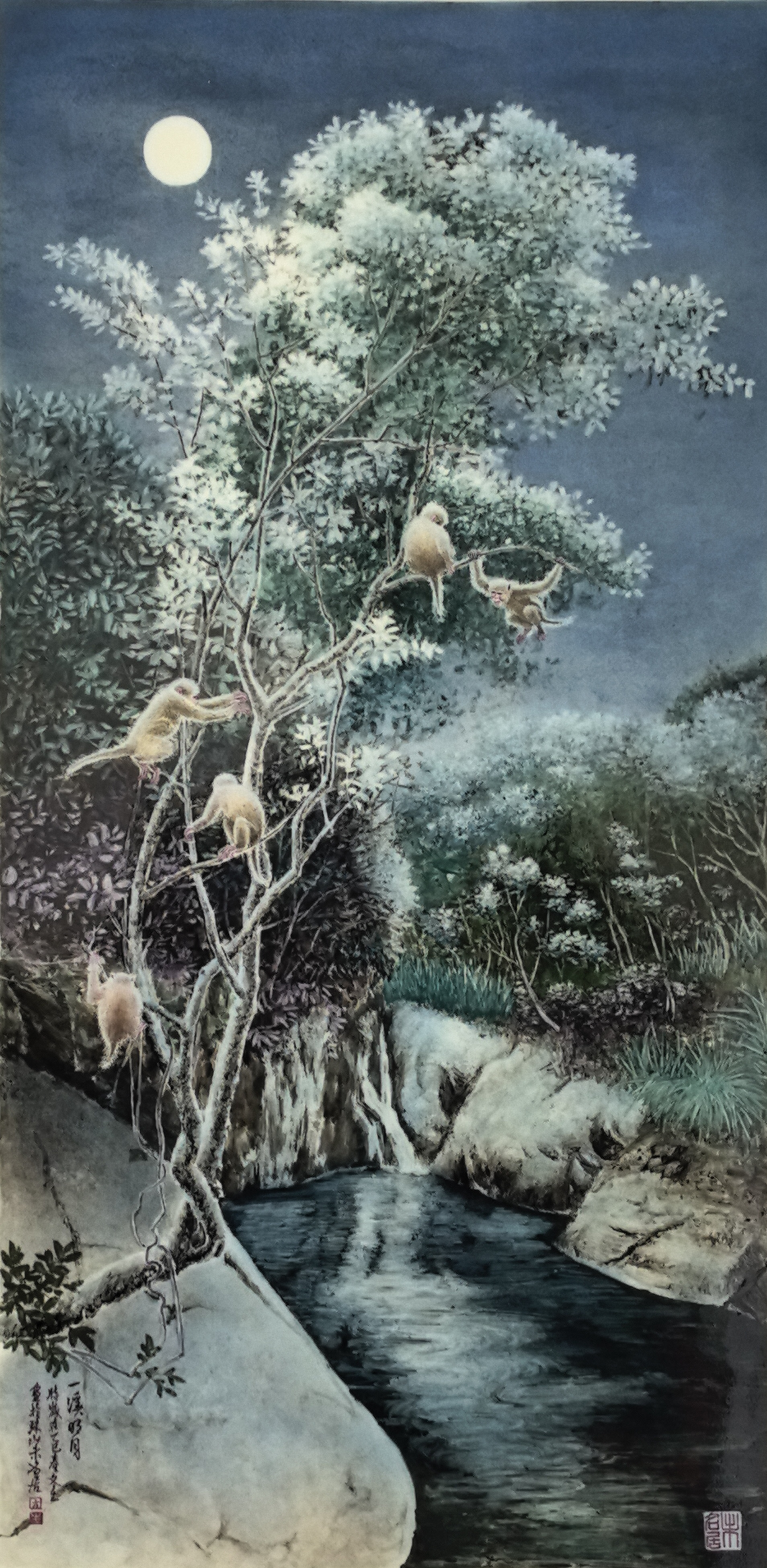 2021年作品《月昇溪林》釉上彩瓷瓶在華逸國際拍賣。